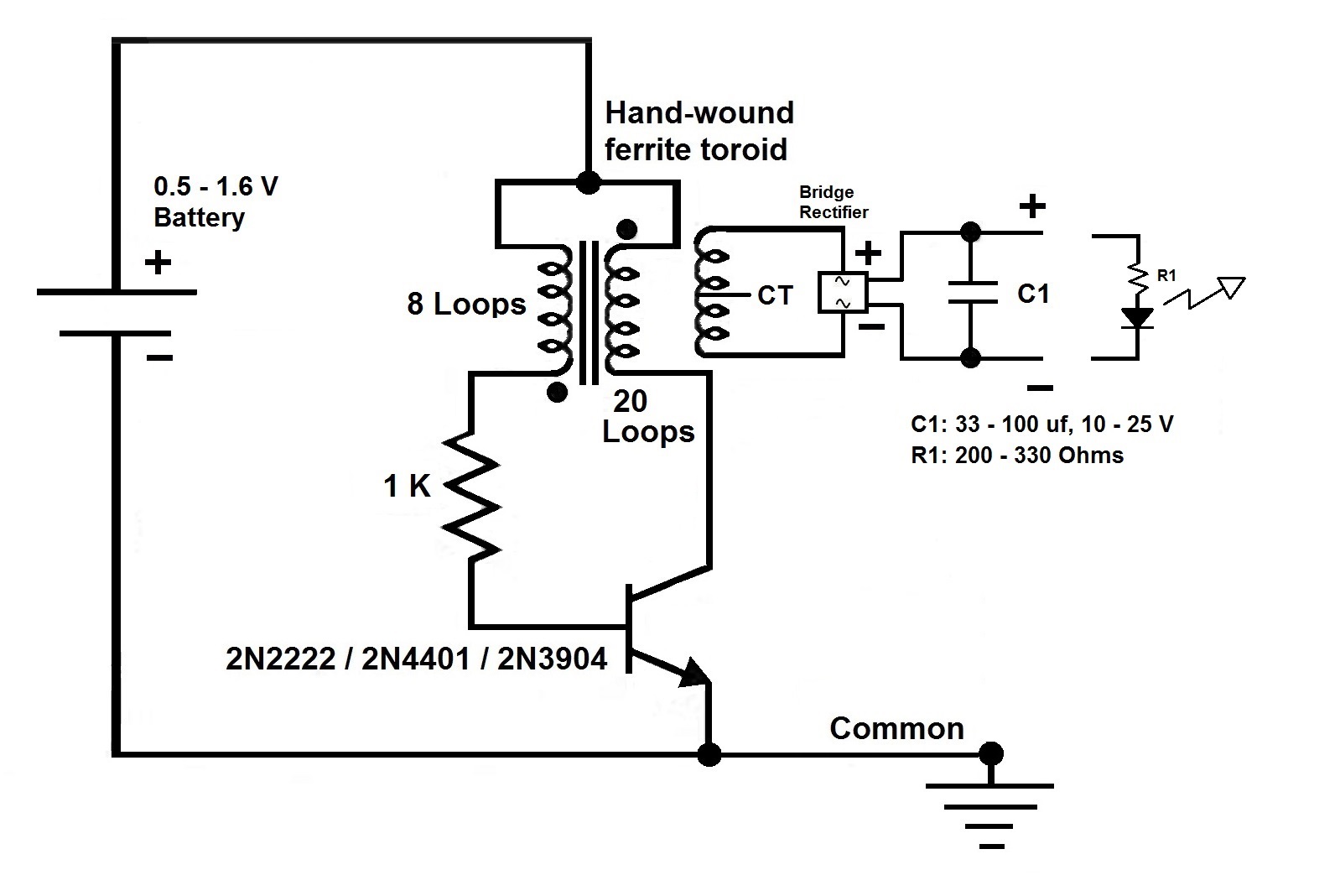 the basic joule thief circuit in supplying a steady voltage to even an LED